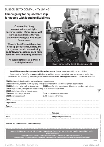 4 Vol 33 No 4 | Summer 2020 Community Living www.cl-initiatives.co.uk
