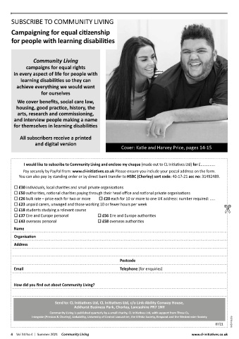 4 Vol 34 No 4 | Summer 2021 Community Living www.cl-initiatives.co.uk